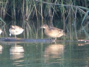 Het werd tijd voor een sanitaire en inwendige stop in het bezoekerscentrum van SBB aan de Kitsweg even verderop. In de naast het centrum gelegen Keerskuisplas een grote groep Kieviten, en vooral Slobeenden en Wintertalingen. Na de break was het volgende doel het Oostvaardersveld. Daar werden twee hutten bezocht, de eerste leverde in een beschutte plas vijf Witgatjes op. Bij de tweede hut zaten meer vogels, vooral eenden. De jongen van de Boerenzwaluwen die in de hut nestelen waren inmiddels uitgevlogen. Een korte stop bij de Kleine Praambult leverde een overvliegende Sperwer en fraai uitzicht over het droge deel van de Oostvaardersplassen op, met in de verte een paar Edelherten.