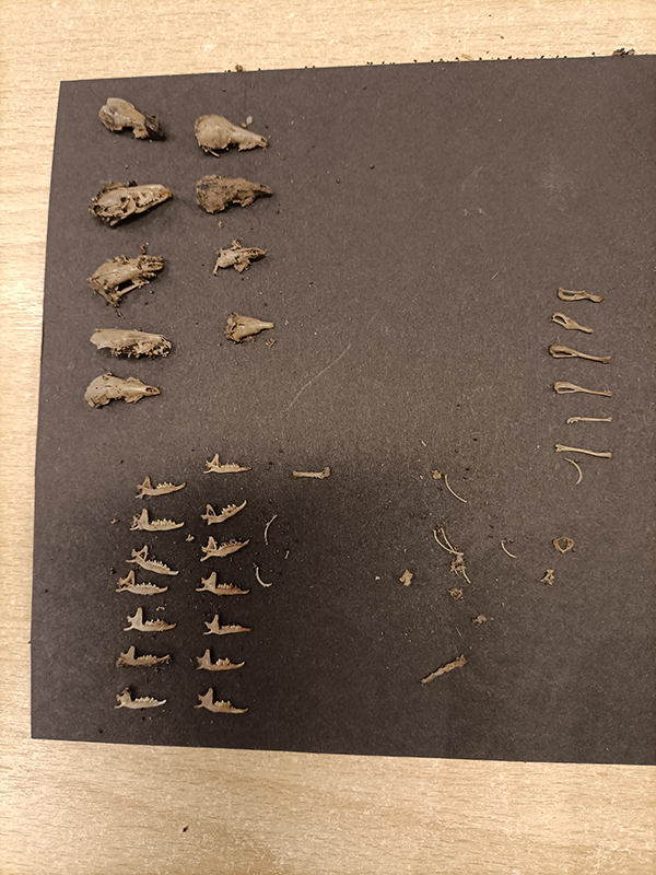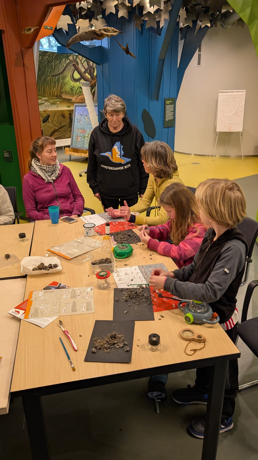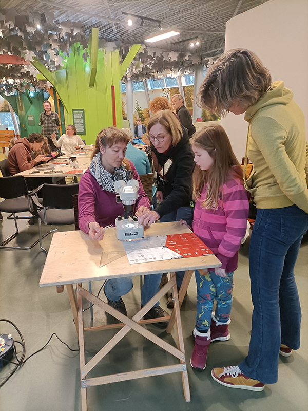 Daarna ging iedereen aan de slag. Alle kinderen pulkten ijverig hun uilenbal open met prepareernaalden en pincetjes en poetsten de botjes schoon met oude tandenborstels of penselen. Met behulp van loepjes en zoekkaarten probeerden de kinderen samen met hun ouders te kijken van welke muizensoort de gevonden schedeltjes waren. Maar dat was altijd even niet gemakkelijk.